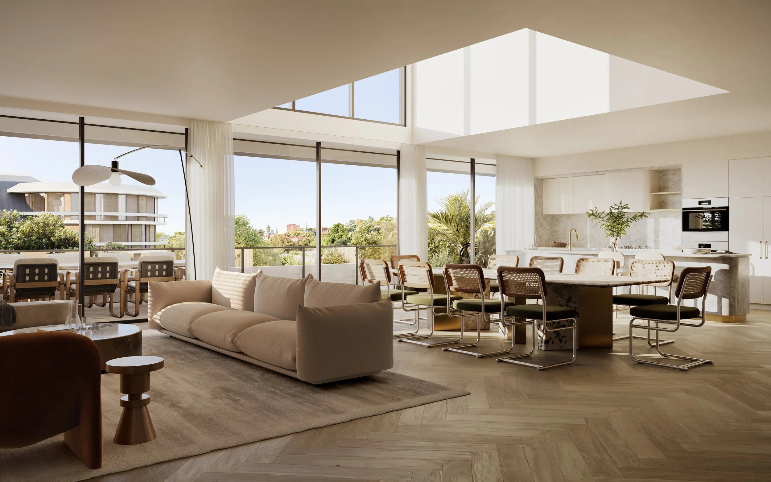 Number Fourteen is a luxury, boutique development ideally located in the centre of Double Bay. Defined by its opulent finishes and refined character, the project is well known by Eastern suburb locals as a benchmark of design excellence. Set across five storeys, the development provides residential living in the form of 2x full floor, dual storey units, above a single full floor unit. On the ground floor the development also provides two retail spaces, in addition to on-grade parking.